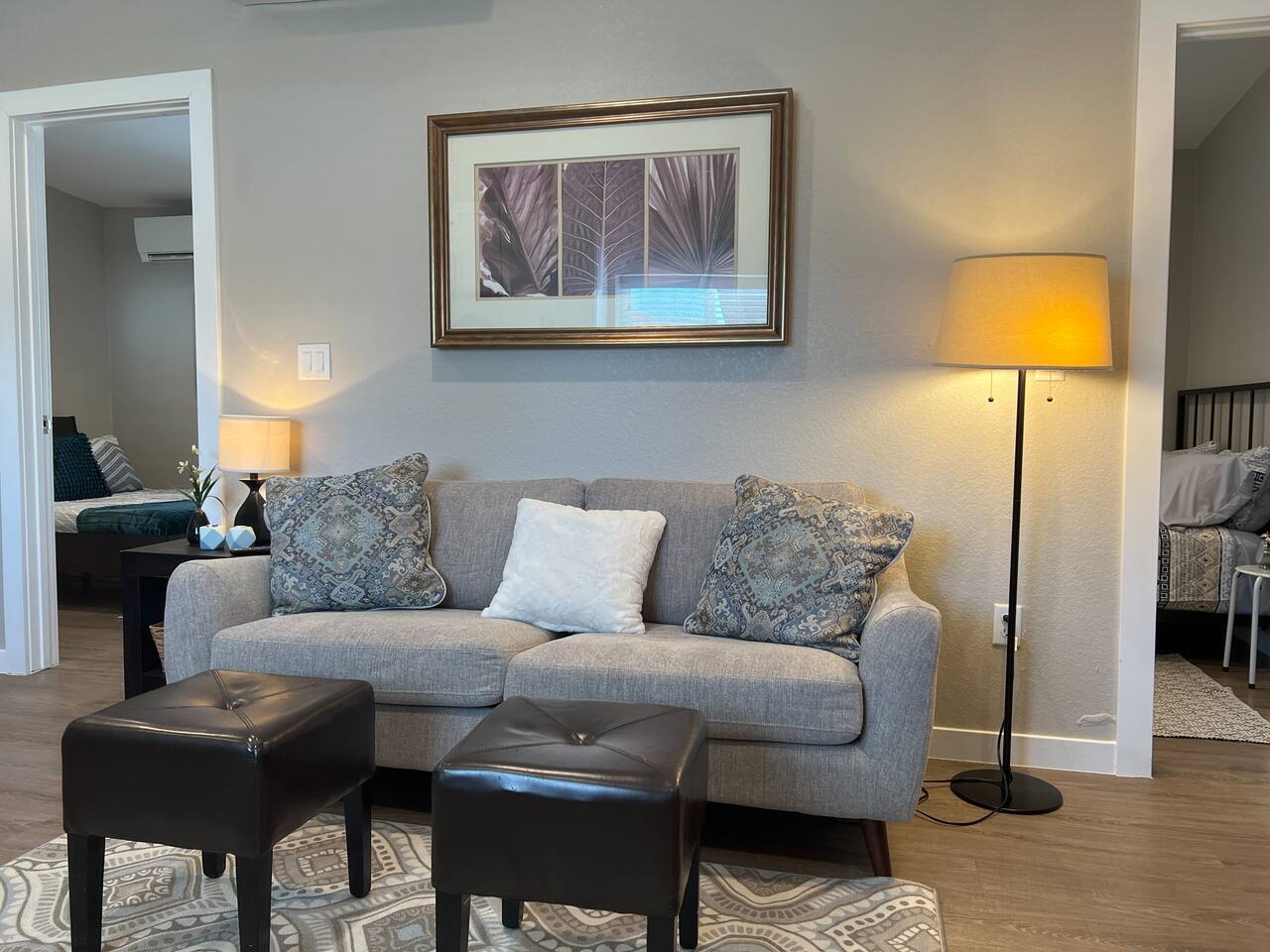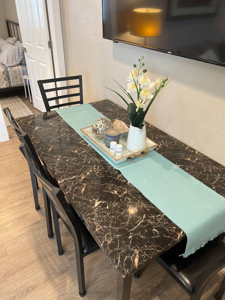 Enjoy the stylish 2 bedroom where luxury meets comfort. You'll be greeted with elegant and modern decor that's perfectly designed to create a warm & inviting atmosphere. The open plan living area features a cozy sofa, flat-screen TV, & a dining area perfect for enjoying a meal with family or friends. The full kitchen is fitted with everything you need to prepare delicious meals. Both bedrooms are designed for relaxation w/ comfortable beds & luxurious linens. Stay & relax in style.