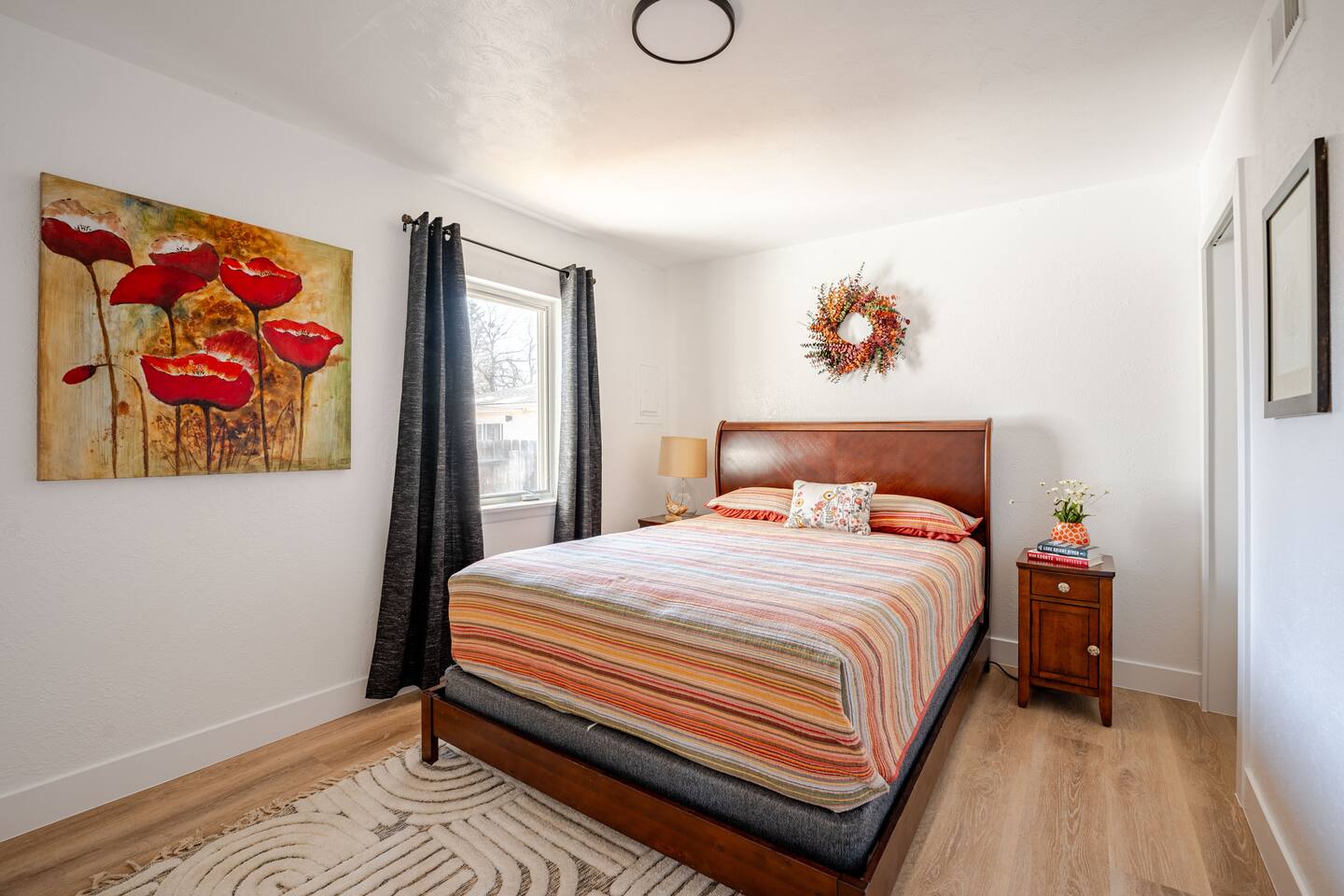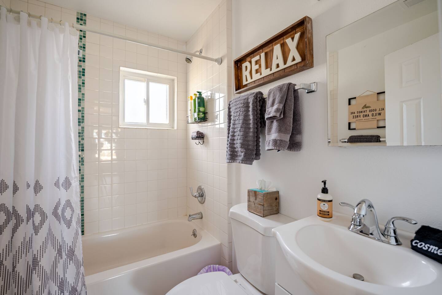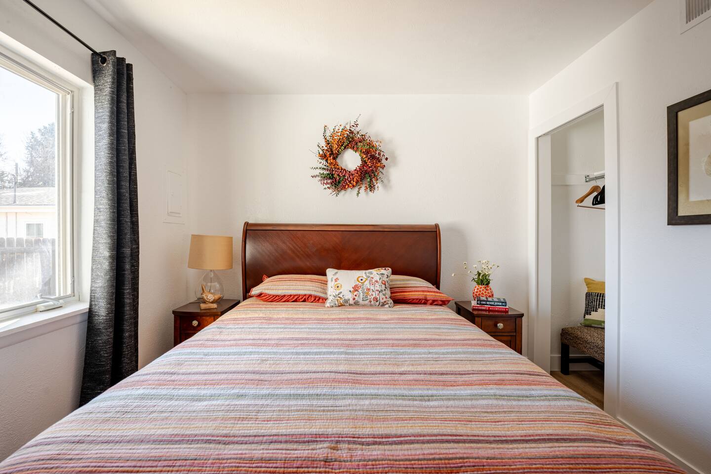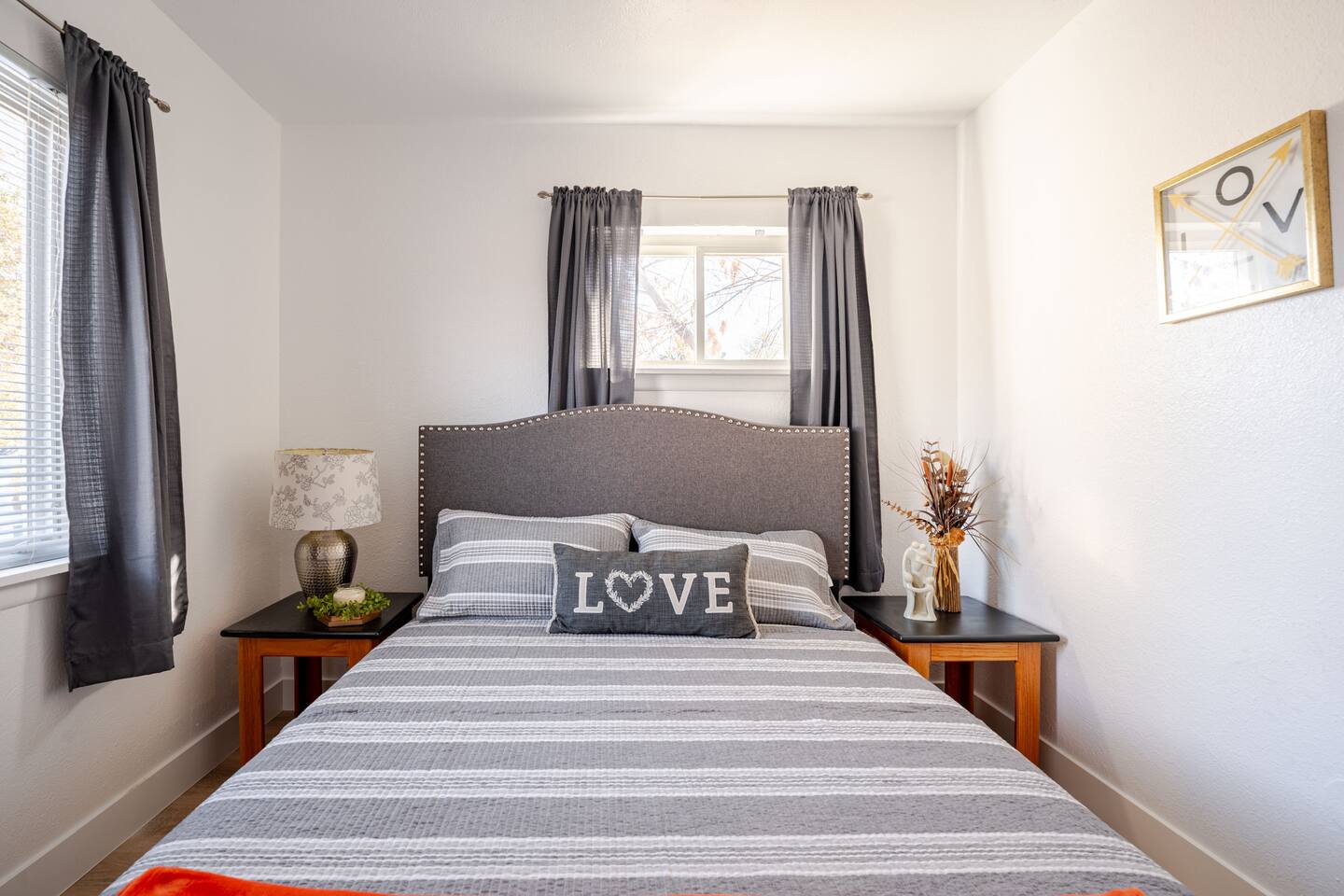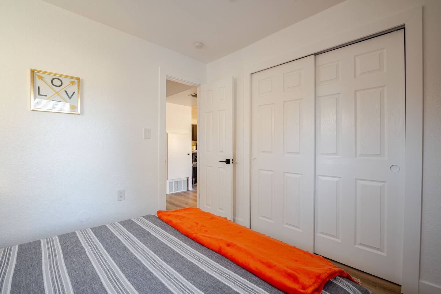 This place was chosen primarily due to the proximity to my cousin's home. It turned out to be a great location, easy to walk to get food, and a park right down the street had a concert one of the nights. The place itself was beautiful and comfortable. We only had to turn the swamp cooler on once despite the heat. The windows were able to be opened, allowing for fresh air. There is only one bathroom, which is between the two bedrooms. If you are okay with that fact, this is a great place to stay. The keypad made entry easy to the home. I would definitely stay here again.