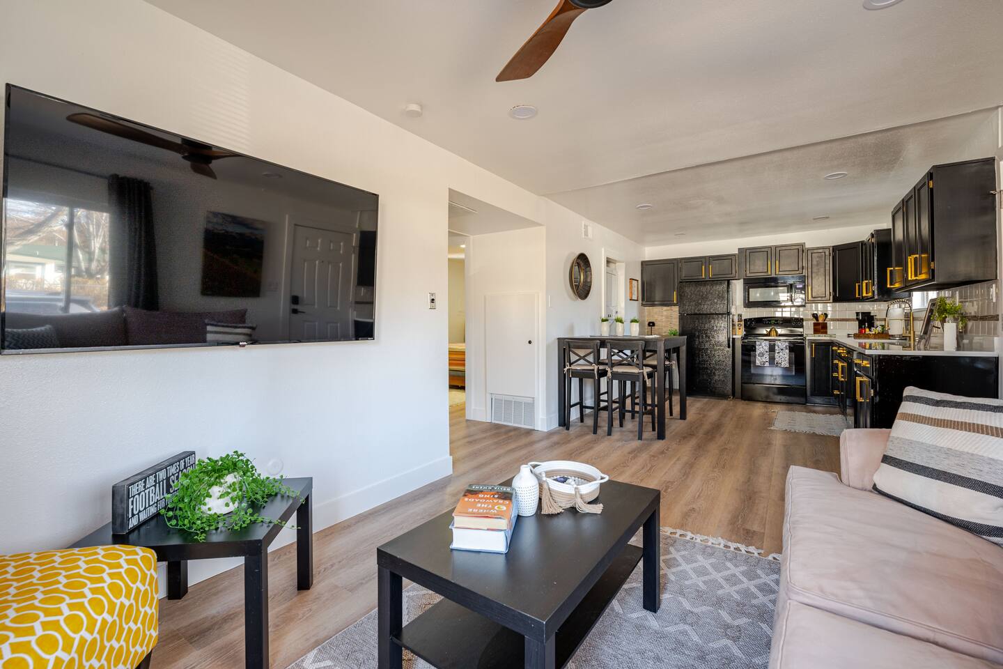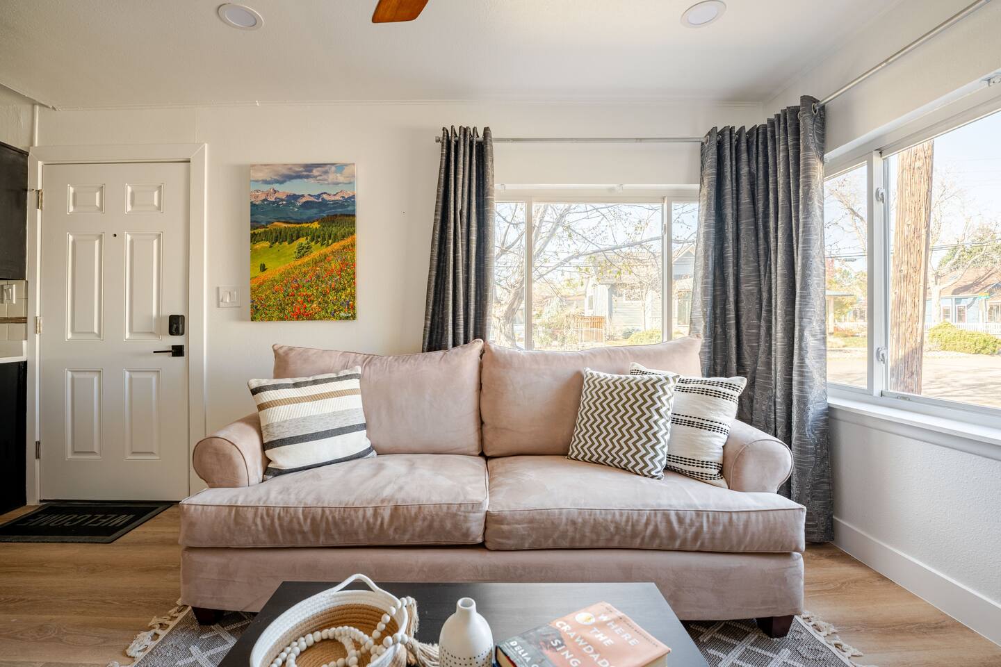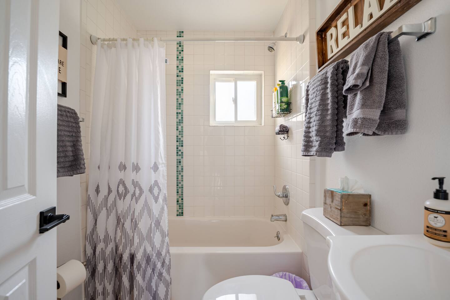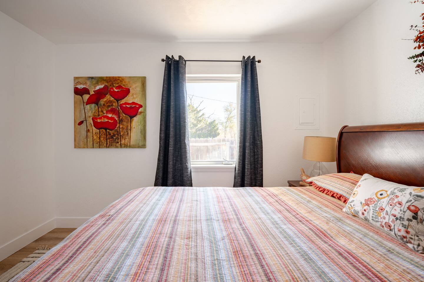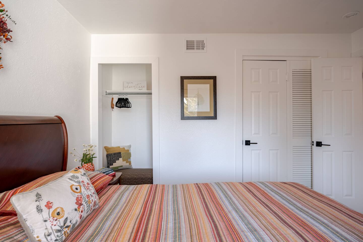 This place was chosen primarily due to the proximity to my cousin's home. It turned out to be a great location, easy to walk to get food, and a park right down the street had a concert one of the nights. The place itself was beautiful and comfortable. We only had to turn the swamp cooler on once despite the heat. The windows were able to be opened, allowing for fresh air. There is only one bathroom, which is between the two bedrooms. If you are okay with that fact, this is a great place to stay. The keypad made entry easy to the home. I would definitely stay here again.