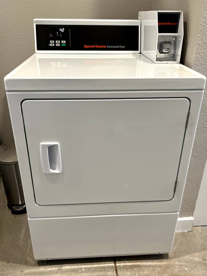 The laundry machines were placed in the complex by a third-party provider. The machines are card-operated: Washer: $2.50 per cycle Dryer: $1.75 per cycle In the event that issues arise, we can recommend a nearby laundromat for your convenience.